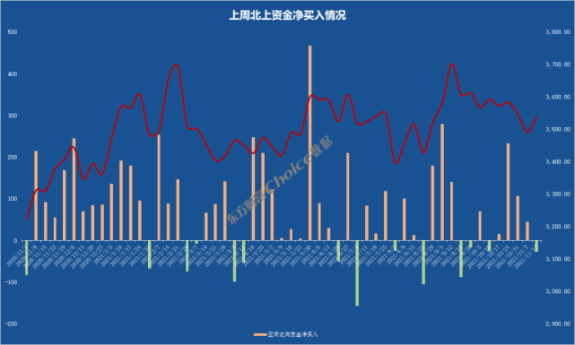 上周,北上资金累计净流出26.91亿元,其中,沪股通净流出20.21亿元,深股通净流出6.71亿元。