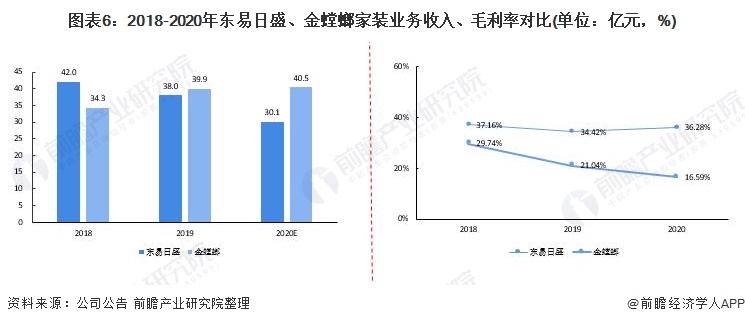 从家装业务的经营情况来看,2018-2020年,东易日盛与金螳螂家装业务营收差距不大,2020年,东易日盛的家装业务实现收入30.1亿元。