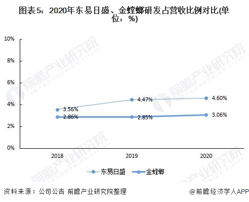 由于两家公司为传统家装行业企业,研发占营收比例不到5%。2018-2020年,东易日盛研发占营收的比例高于金螳螂,从该指标上来看,东易日盛领先。