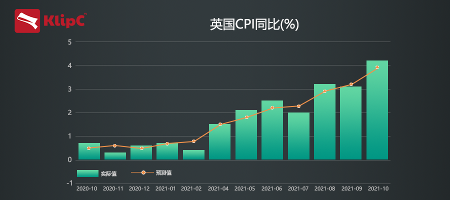 KlipC报道:继美国通胀超预期后,英国通胀也飙升至10年来最高水平。