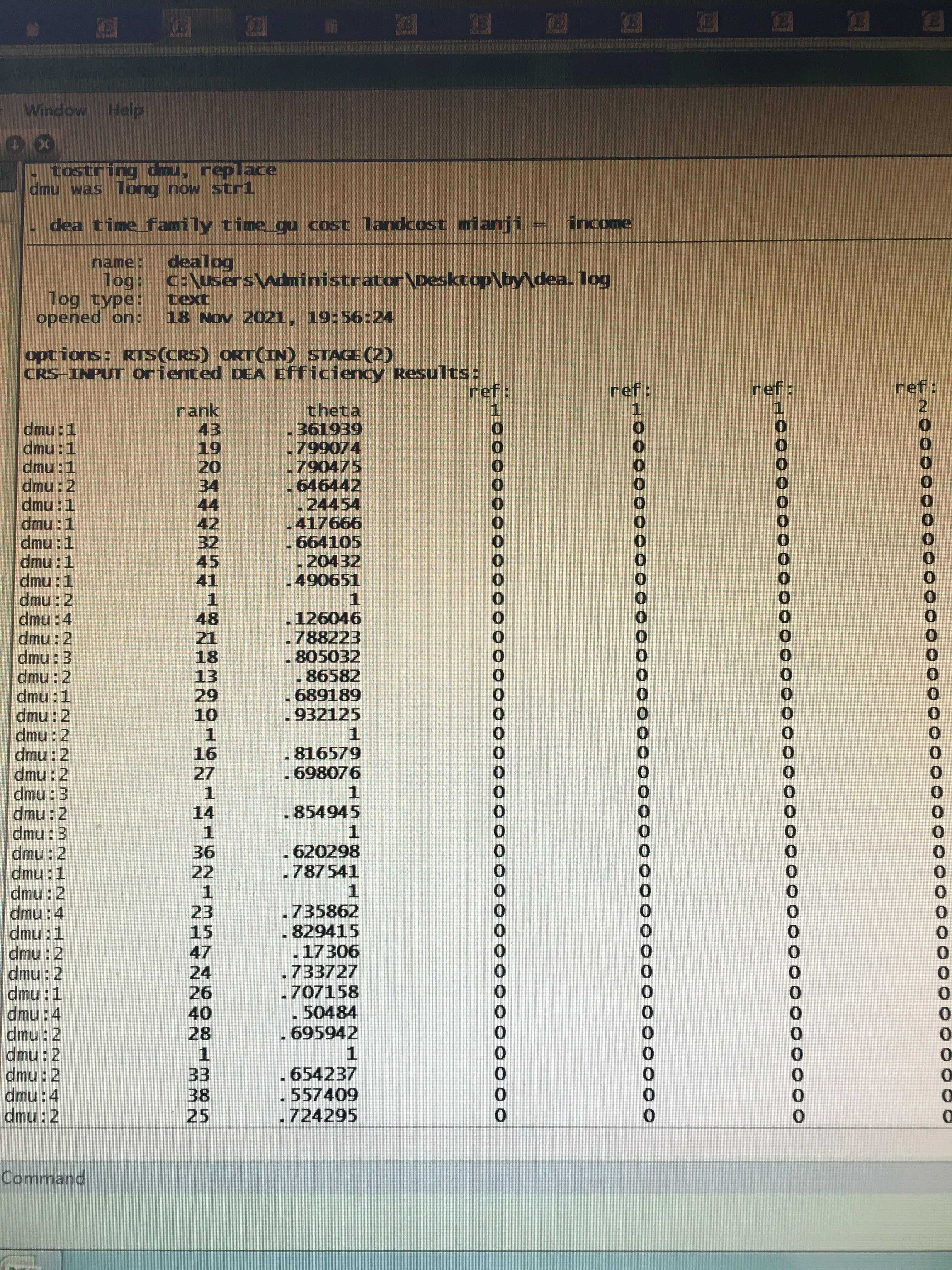 gao371326 发表于 2021-11-18 19:10 DEA 的分析结果为什么是这样的,相同的DMU为什么没有合起来,我的是横截面数据,求大神帮忙解疑