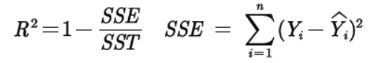 首先,拟合优度R2 的计算公式如下,其含义为我们估计出来的模型对于y变量的样本拟合程度如何,取1则为完全拟合,取0则为没有拟合能力: