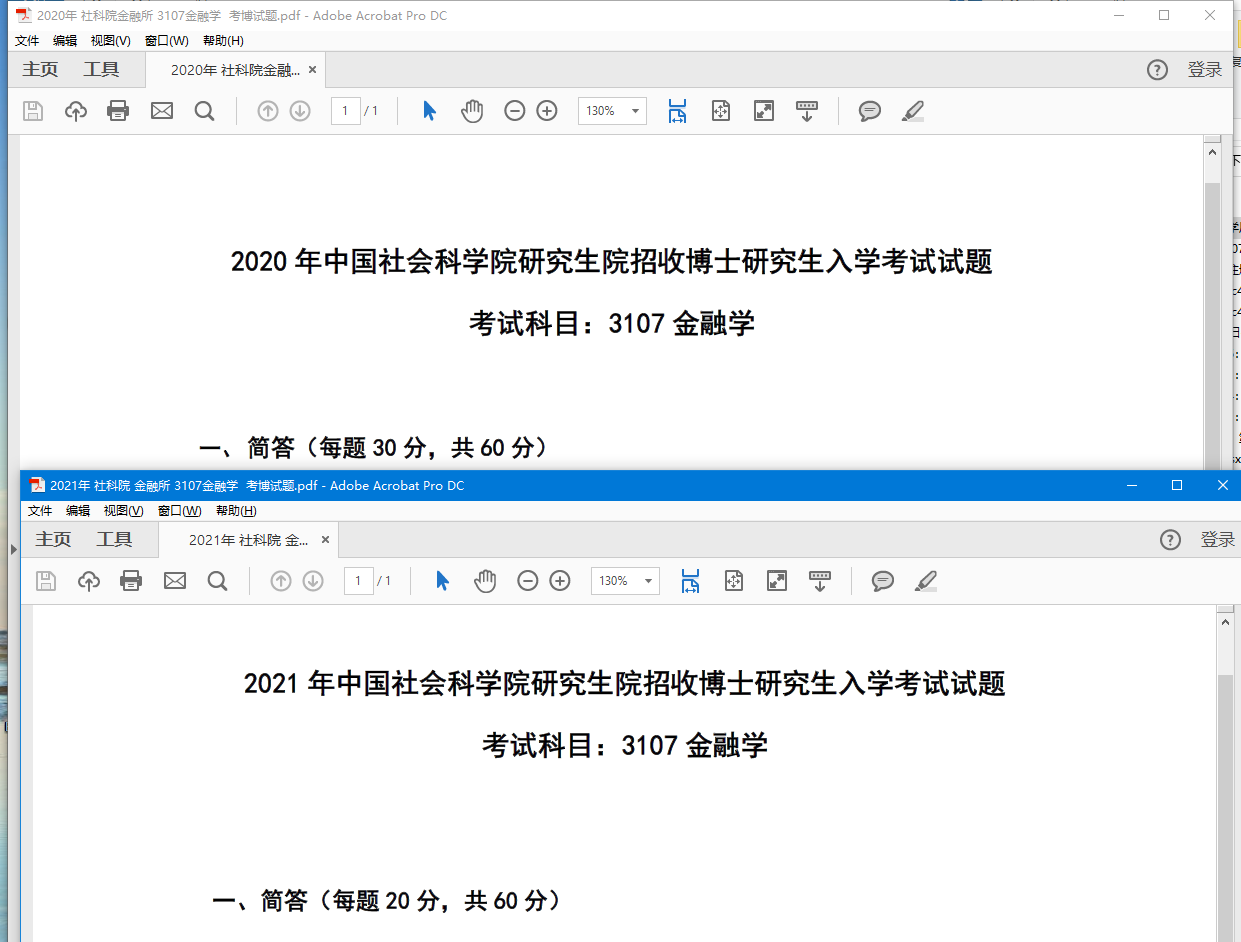 2020年 2021年 社科院金融所 3107金融学 考博试题 中国社会科学院 博士