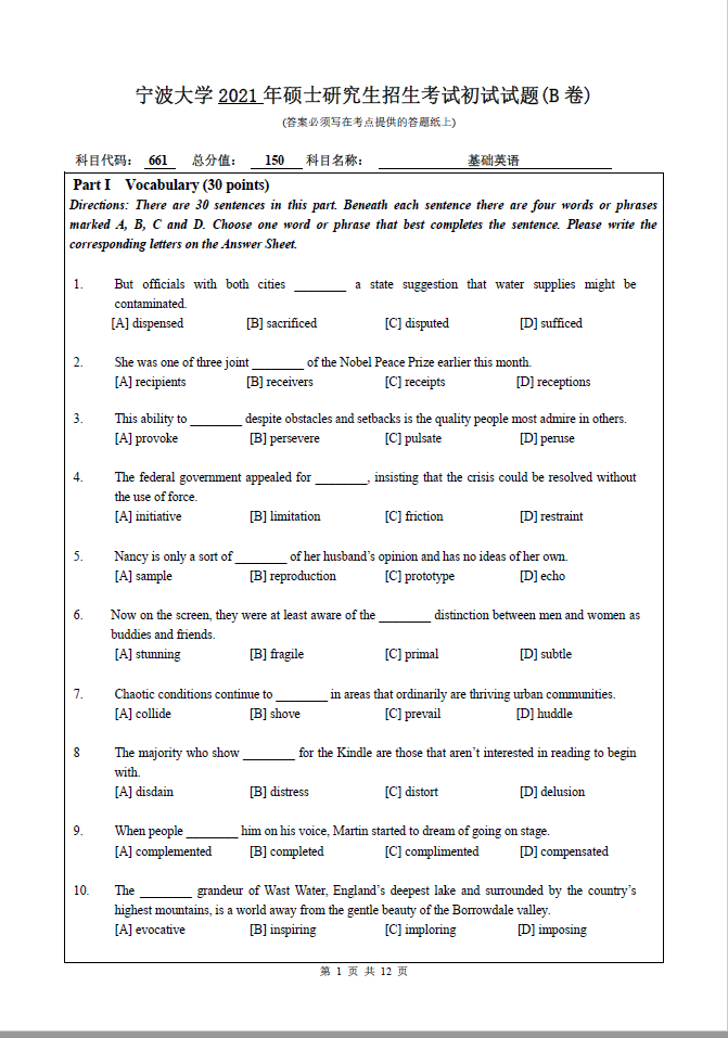 661基础英语(宁波大学2021年硕士研究生招生考试初试试题).pdf