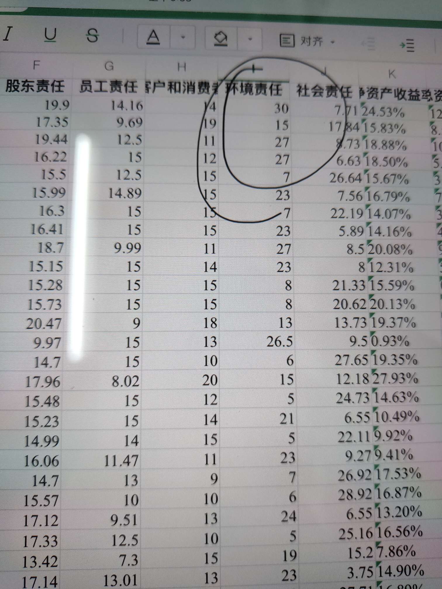 201705 发表于 2021-11-23 09:38 我想用环境责任评分,是直接用这个数据还是用ln(1+环境责任) 因为我看这个环境评分是总评分100的占了一部 ...