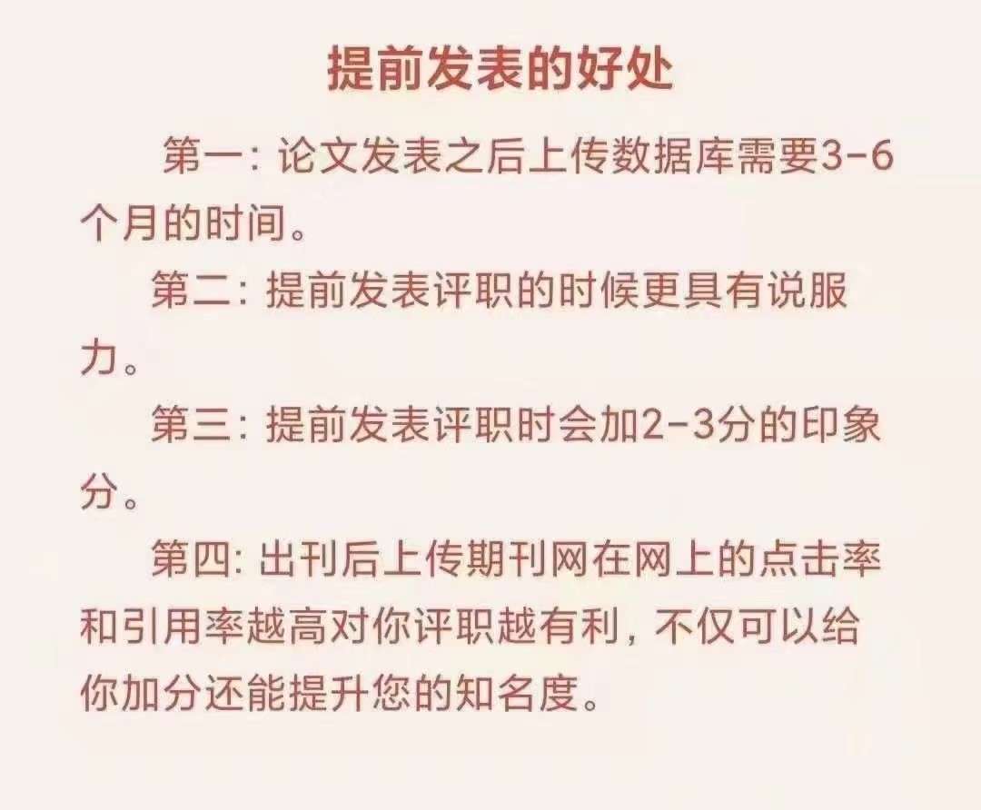 发表流程: 确认需求—审稿—提稿—截稿—三审三校—终审—送印—邮寄—上传数据库(所以不是提交了版面费就能拿到样书,以上流程都需要周期,只要任意环节出了问题,都有可能导致刊期延误。)所以请各位老师不要犹豫额,早安排早安心