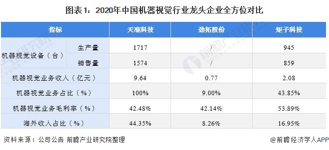 人工智能正在快速发展的一个重要分支,机器视觉主要用于产品质量检测、测量、引导定位、识别分析等,我国已成为机器视觉发展最活跃的地区之一。目前,中国机器视觉设备研发制造的龙头企业包括天准科技(688003)、劲拓股份(300400)、矩子科技(300802),三家企业机器视觉业务全方位对比如下: