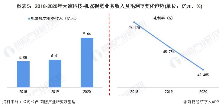 在毛利率方面,2018-2020年,公司机器视觉业务毛利率持续下降,主要系智能检测装备制造成本大幅度增长所致,但整体来看,毛利率仍处于40%以上的较高水平,表明天准科技机器视觉业务的盈利状况良好。