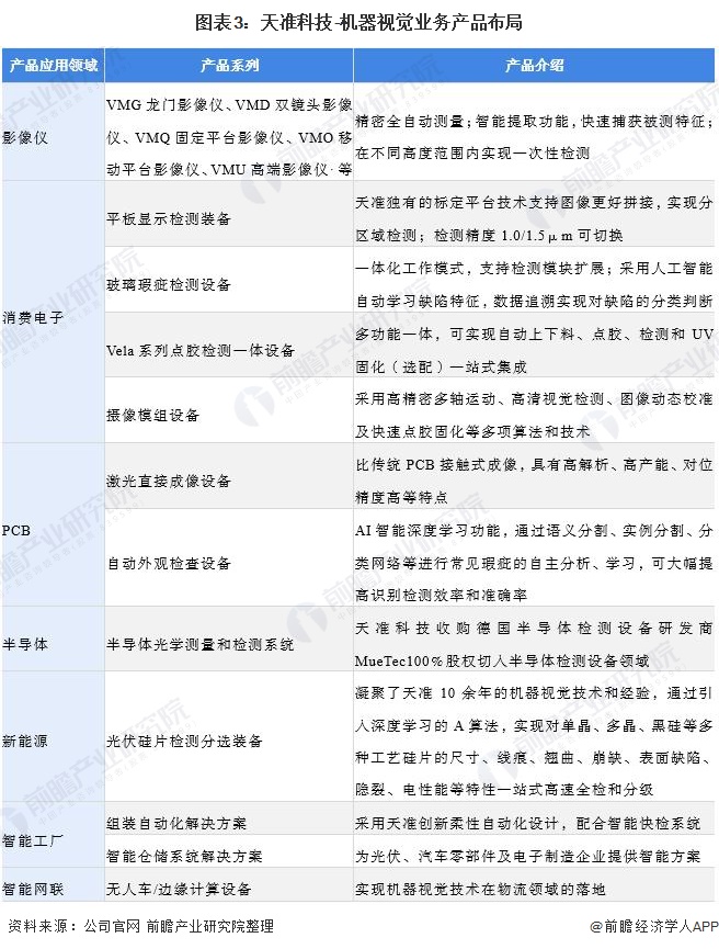 天准科技将机器视觉核心技术应用于工业领域,在机器视觉算法、工业软件平台、先进视觉传感器、精密驱控技术等前沿科技领域不断投入研发,构筑和强化技术壁垒。从产品布局领域来看,天准科技的机器视觉业务产品覆盖了影像仪、消费电子、PCB、半导体、新能源、智能工厂、智能网联等众多设备应用领域,产品涉及范围广、品种丰富。
