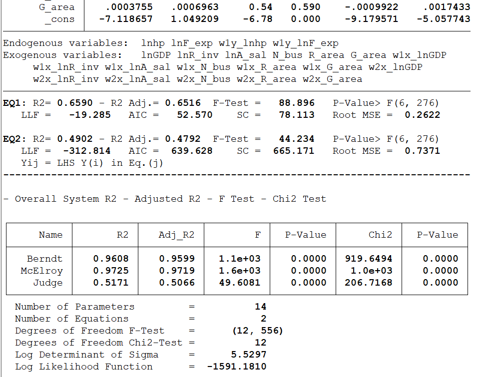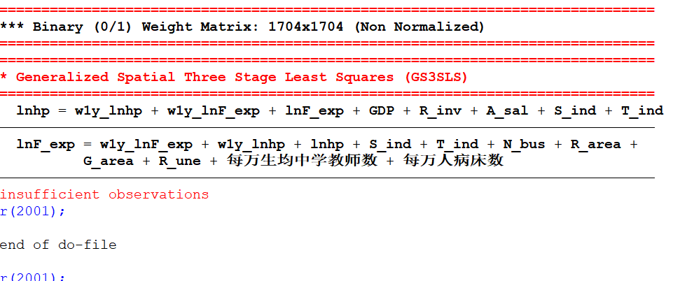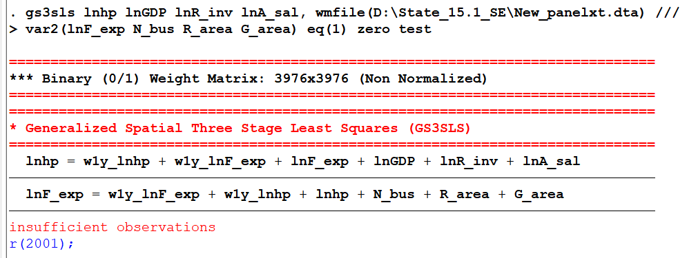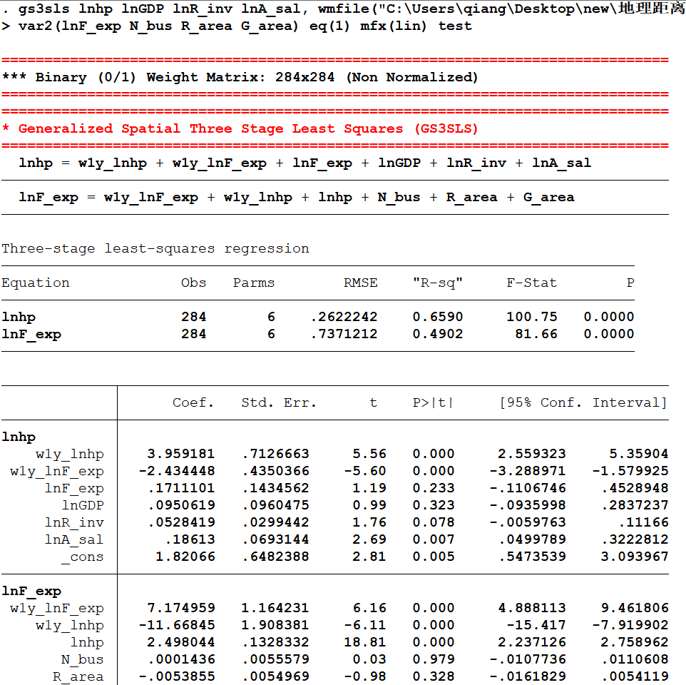 微观计量小白白 发表于 2021-11-27 20:34 命令如下: . gs3sls lnhp GDP R_inv A_sal S_ind T_ind, wmfile(D:\State_15.1_SE\New_panelxt.dta) > ...