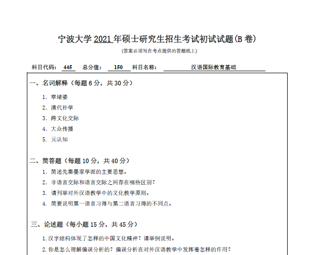 445汉语国际教育基础(宁波大学2021年硕士研究生招生考试初试试题).pdf