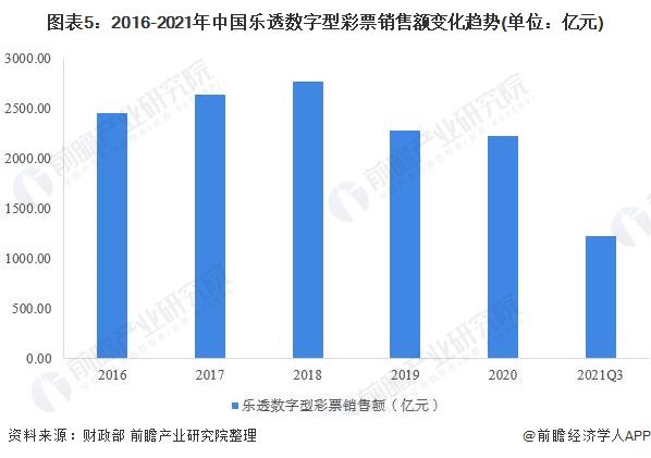 数据显示,2021年前三季度,我国乐透数字型彩票销售1218.98亿元,同比减少344.63亿元。