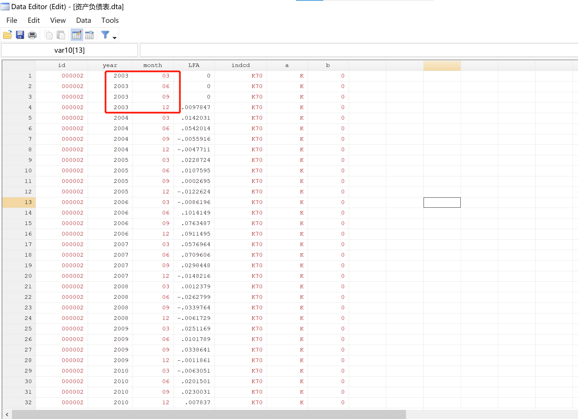 许多公司同一年都会有差不多4个观测值,有些有2、3个
