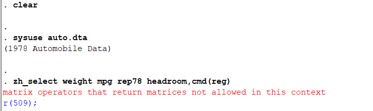更新后可以使用诸如reghdfe ,xtreg等常见的回归命令,相比之前有了更多支持。使用方法为: zh_select y x1 x2 x3。。。,cmd(回归命令) others(absorb(,后面的语句)),比如我正常使用reghdfe的回归命令为:reghdfe mpg headroom weight, absorb(gear_ratio foreign ) ,等价的命令为zh_select mpg headroom weight,cmd(reghdfe) others(absorb( gear_ratio foreign )) 。再比如xtset id year 后,常用的固定效应命令为 xtreg y x1 x2 x3,fe r .等价的命令为zh_select y x1 x2 x3,cmd(xtreg) others(fe r) 请下载zh_select_v3版本的附件。