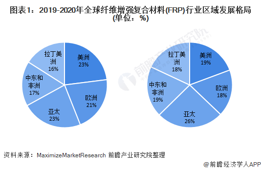 根据MaximizeMarketResearch的数据显示,美洲、欧洲和亚太地区是全球纤维增强复合材料(FRP)主要的市场规模集中地;2019年,美洲、欧洲、亚太分别占据全球市场规模的23%、21%和23%;而在2020年,由于新冠肺炎疫情的影响,美洲和欧洲的疫情反复导致纤维增强复合材料(FRP)行业发展受阻,占比分别下跌至19%和18%;而在亚太地区,由于中国防疫有效,使得纤维增强复合材料(FRP)行业较其他地区恢复较快,因此造成了亚太地区2020年市场规模占比达到了26%。