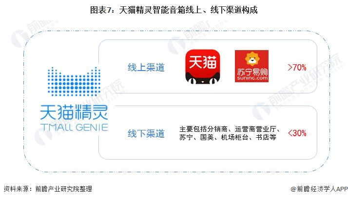 基于线上渠道在智能音箱行业的重要地位,在阿里巴巴旗下淘宝、天猫平台的支撑下,天猫精灵智能音箱的渠道优势凸显。相关数据显示,天猫精灵线上渠道销售占比超过七成,自家线上销售渠道平台难免会为天猫精灵创造流量优势,为天猫精灵产品销量提供增长动力。