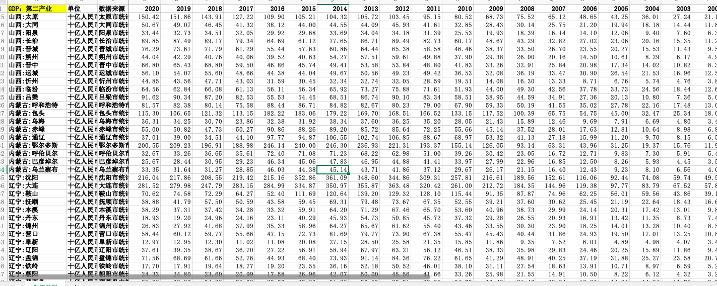 GDP:第二产业 1999-2020.xlsx