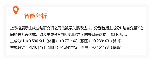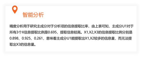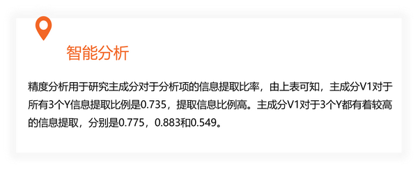 其中又包括以下几个步骤:①建立主成分与Y的关系表达式、②描述主成分与研究项之间的相关系数loading值、③描述主成分与研究间之间信息解释率(浓缩率)即精度分析、④建立原始自变量X对Y的回归方程、⑤X对Y的解释力度。