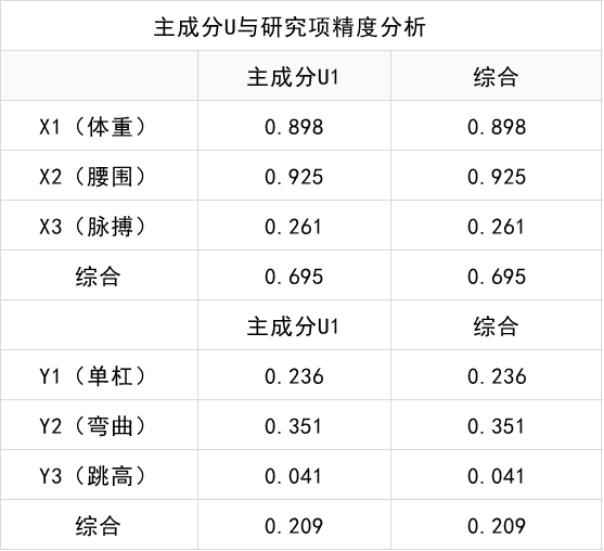 主成分U与研究项精度分析表