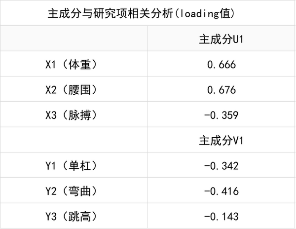 上表用于分析主成分与分析项间的相关关系,loading值即为主成分与研究项之间的因子载荷系数(factor loading)值。