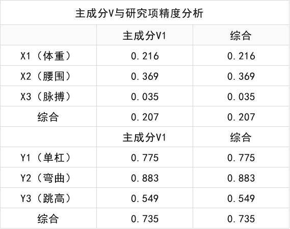 主成分V与研究项精度分析表