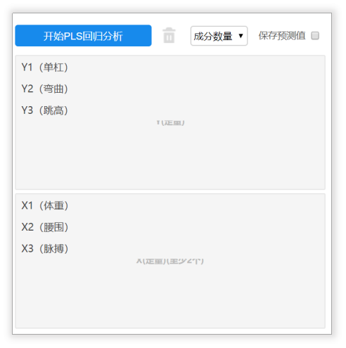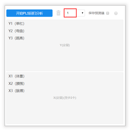 第二阶段:确定提取主成分个数后,回到分析页面,将【成分数量】改为1,即提取1个主成分。点击开始PLS回归分析。