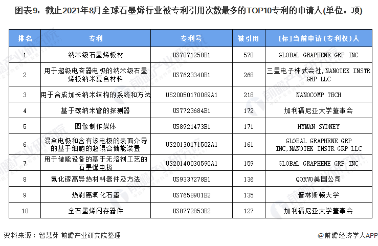 (3)专利引用次数TOP10的申请人:Global Graphene Group Inc表现突出