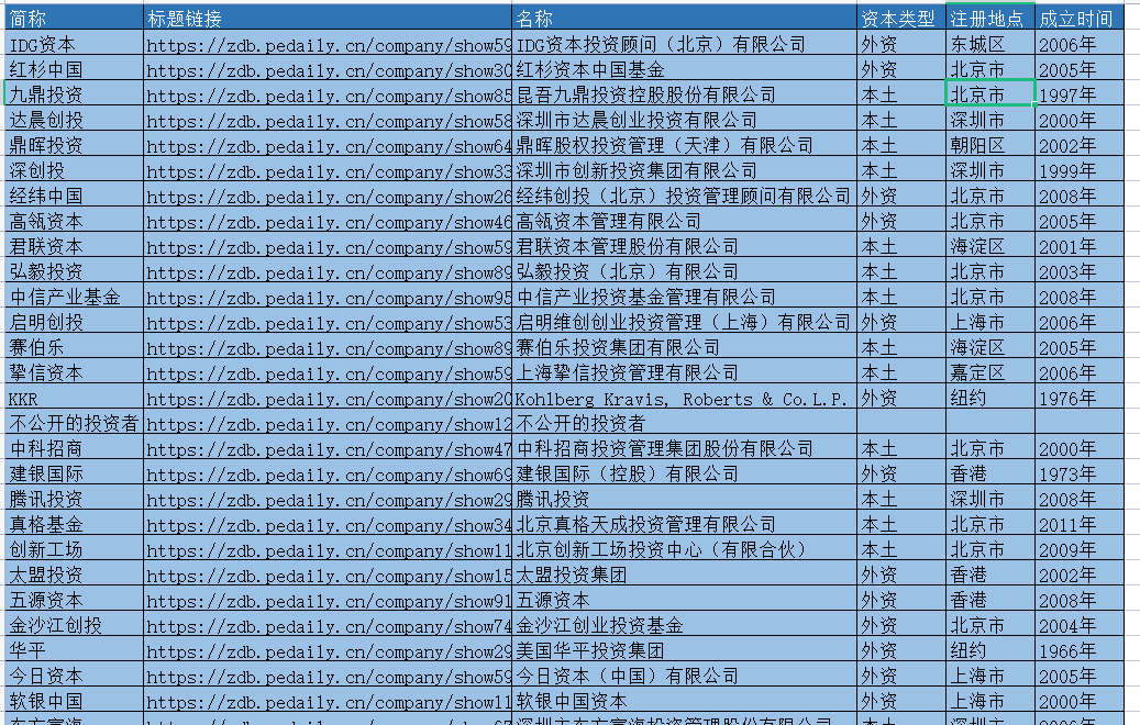 简称 标题链接 名称 资本类型 注册地点 成立时间