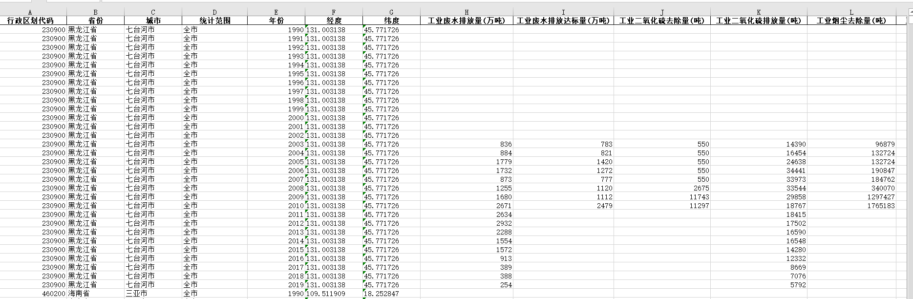 数据名称:地级市-污染排放个相关指标(1990-2019)