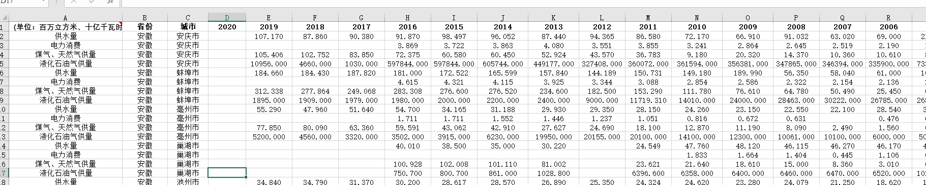 数据指标:供水量;电力消费;煤气、天然气供量;液化石油气供量