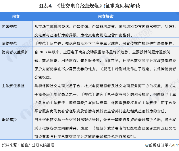 2018年7月,《社交电商经营规范》(征求意见稿)发布,这是商务部唯一批准的社交电商行为规范。《规范》是我国社交电商立法的一次重要举措,意味着我国社交电商将进入法治化、规范化的发展轨道,也意味着我国电子商务立法的又一次新突破。《规范》主要包含社交电商经营规范、宣传规范、消费者权益保护、主体责任承担、争议解决五个方面的内容。