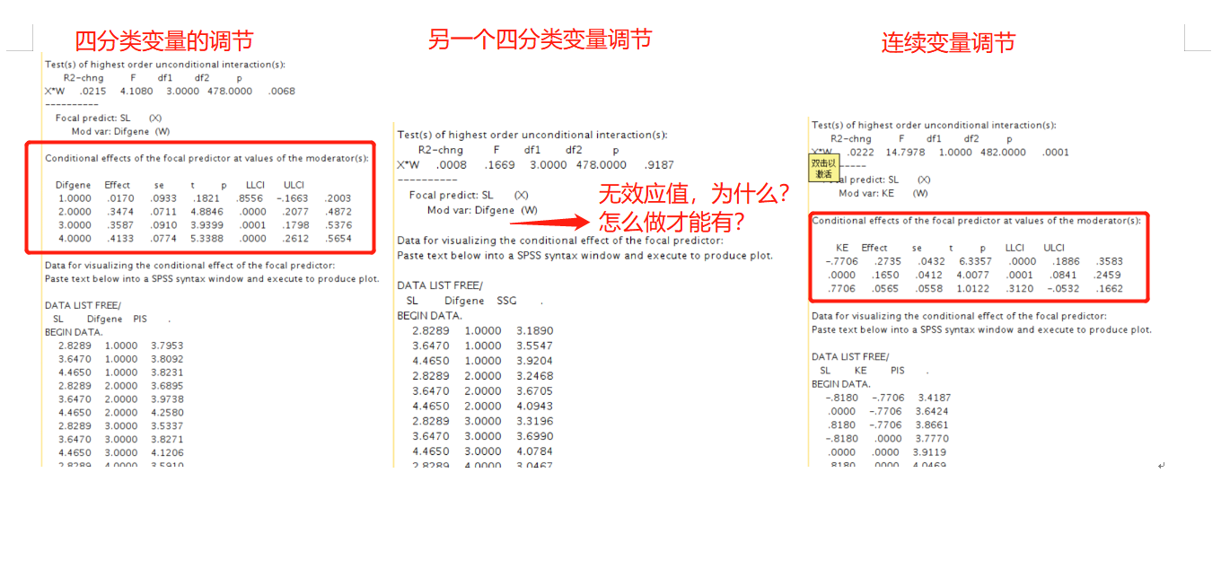 【spss插件process跑分类变量调节,跑出的结果没有简单斜率】