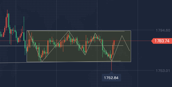 二、黄金反弹1788附近空,带止损1793,下方目标1775附近即可出局。
