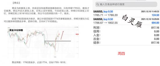 回顾周四,笔者文章明确给出做多策略,黄金大涨,收获颇多。看准了方向,就要去执行,大好的行情往往就在不起眼的一瞬间,交易两单。