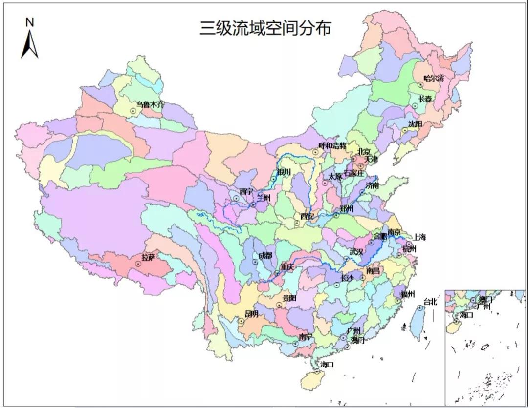 全国200多个三级流域空间分布数据shp矢量面状水系边界