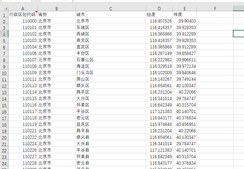 数据名称:全国各省/市/县经纬度、区县与地级市和省会的距离