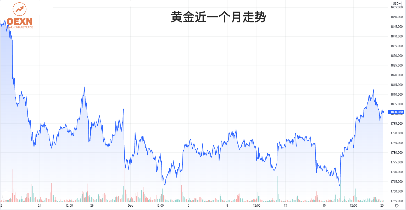 华尔街的分析师表示:“就在12月18日金价探底回升,当周上涨了15.27美元。”在他看来由于对通胀升温的担忧,黄金又再一次受到青睐,他指出除了通胀的飙升,还有Omicron对经济影响的不确定性、全球债务飙升以及英国央行调升利息等因素都是支撑金价上涨的主要因素。