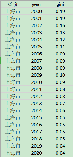 计算的基尼系数:基于地级市夜间灯光数据计算的省份Dagum基尼系数数据: