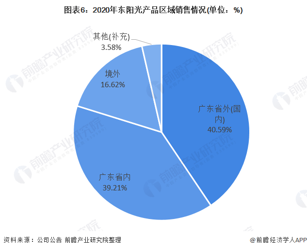 从销售区域来看,2020年东阳光以国内市场为主,其中来自广东省内的营业收入占比为39.21%,来自广东省外的境内收入为40.59%。境外收入占比为16.62%。