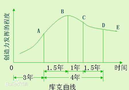 库克曲线是根据对研究生参加工作后创造力发挥情况的统计所绘出的曲线。