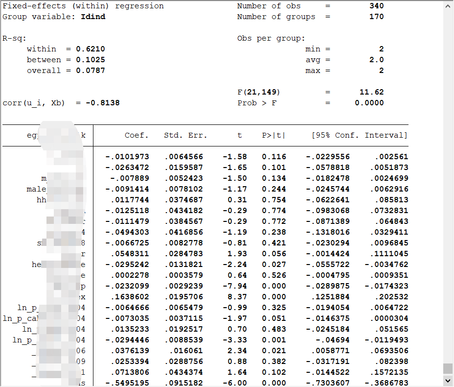 xieyu75 发表于 2021-12-24 10:30 两期数据的面板直接用混合数据做就可以,不要用面板模型,无法实现固定效应。