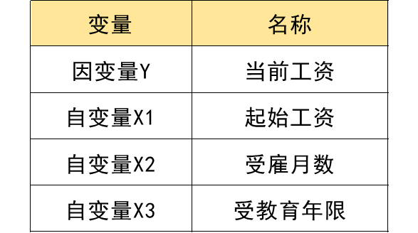 当前进行一项雇员工资影响因素研究(200个样本),影响因素X共有三项,分别是‘起始工资’,‘受雇月数’和‘受教育年限’。因变量Y为当前工资。