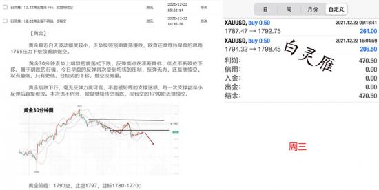 第一单:1787.47进场多,1792.75出局,获利264美元。