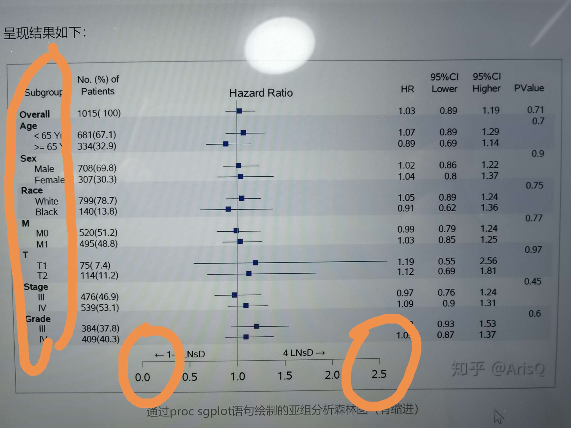 sas中如何利用SGplot让图在中间,表的信息在两边的森林图