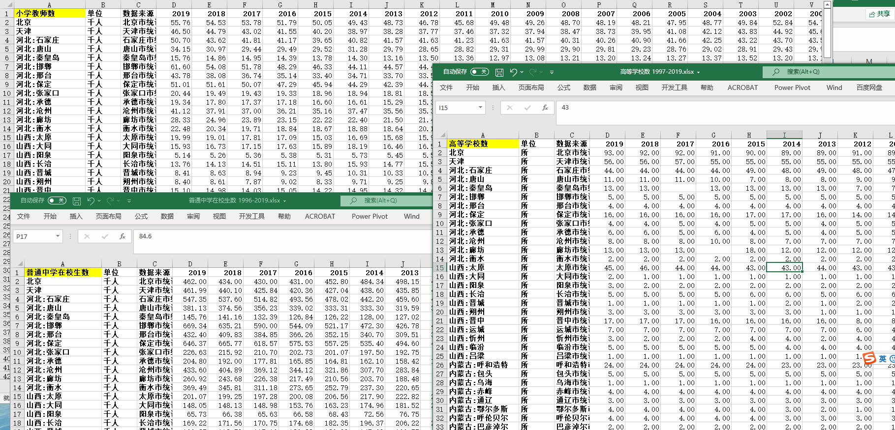 高等院校教师数 1999-2019.xlsx