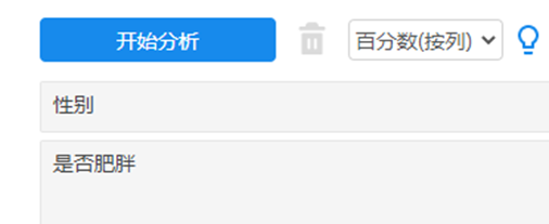 将数据放入分析框中,SPSSAU系统默认计算出Pearson卡方检验结果,并且提供按行或按列百分比格式结果。