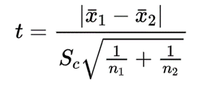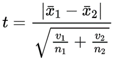 为两个样本的均值,分母是两个样本之差的标准误,其中的