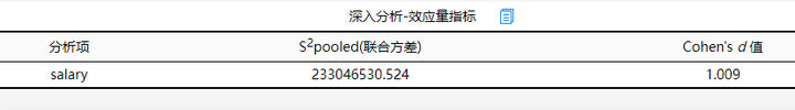 (2) t检验时使用Cohen’s d 值表示效应量大小(差异幅度大小),该值越大说明差异越大,效应量小、中、大的区分临界点分别是:0.20,0.50和0.80;