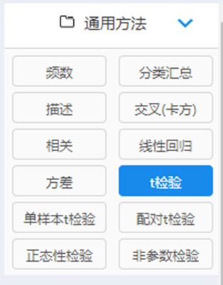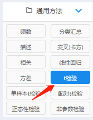 (1)点击SPSSAU通用方法里面的‘t检验’。如下图: