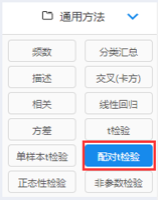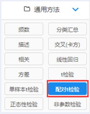 (1)点击SPSSAU通用方法里面的‘配对t检验’按钮。如下图: